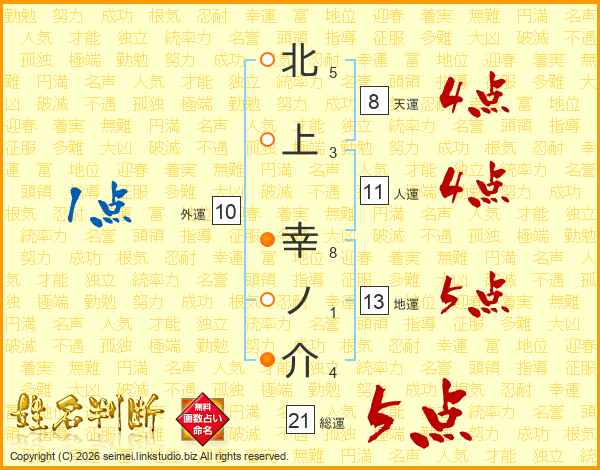 北上幸ノ介さんの総運は21画の5点!