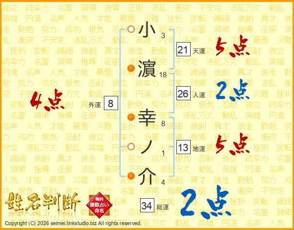 小濵幸ノ介さんの天運は21画の5点!
