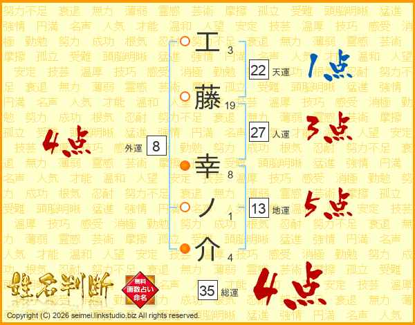 工藤幸ノ介さんの総運は35画の4点!