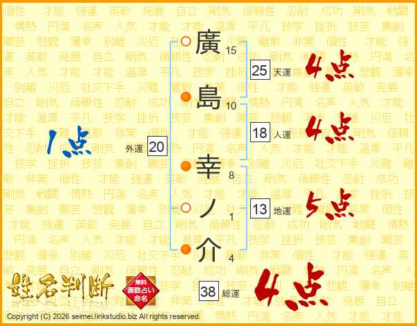 廣島幸ノ介さんの総運は38画の4点!