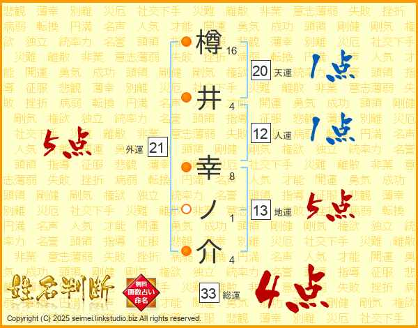 樽(16画)井(4画) 幸(8画)ノ(1画)介(4画)
