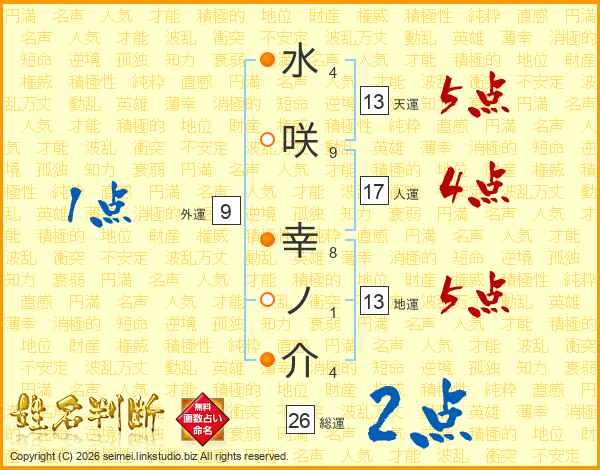水咲幸ノ介さんの総運は26画の2点!