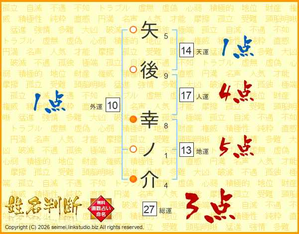 矢後幸ノ介さんの総運は27画の3点!