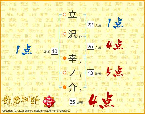 立(5画)沢(17画) 幸(8画)ノ(1画)介(4画)