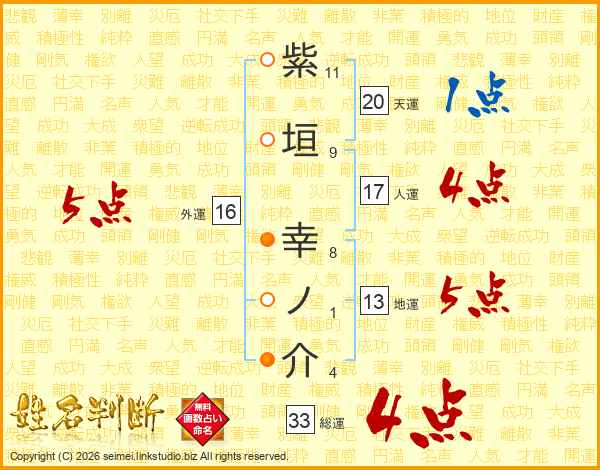 紫垣幸ノ介さんの総運は33画の4点!