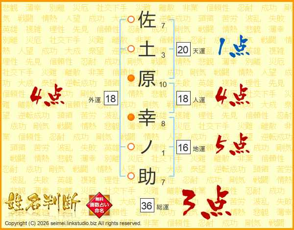 佐土原幸ノ助さんの総運は36画の3点!