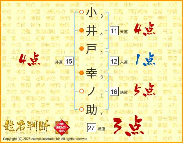 小井戸幸ノ助さんの総運は27画の3点!