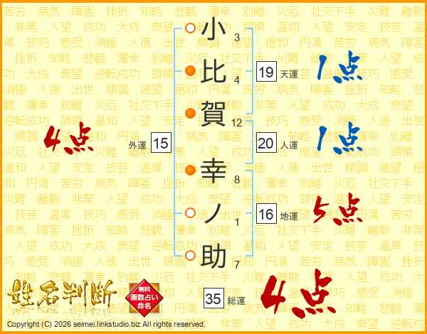 小比賀幸ノ助さんの総運は35画の4点!