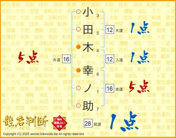 小田木幸ノ助さんの総運は28画の1点!