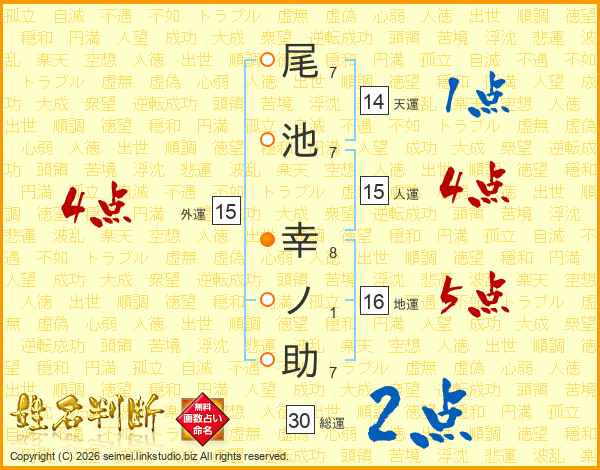尾池幸ノ助さんの総運は30画の2点!