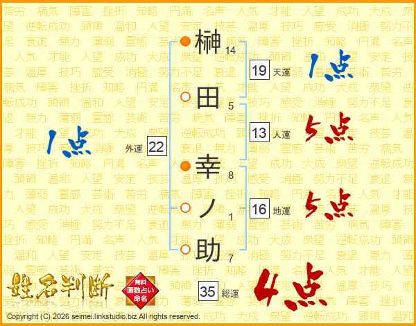 榊田幸ノ助さんの人運は13画の5点!