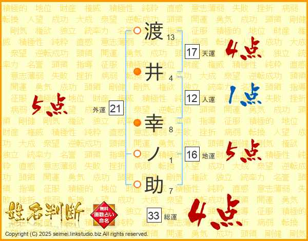 渡井幸ノ助さんの総運は33画の4点!