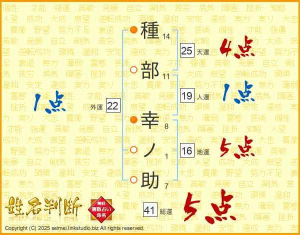 種(14画)部(11画) 幸(8画)ノ(1画)助(7画)
