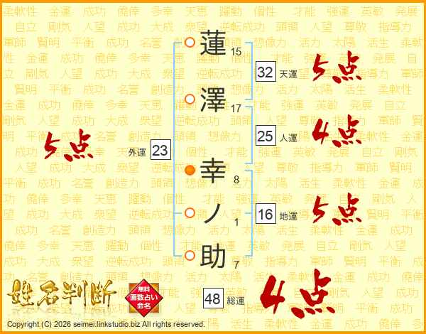 蓮澤幸ノ助さんの外運は23画の5点!