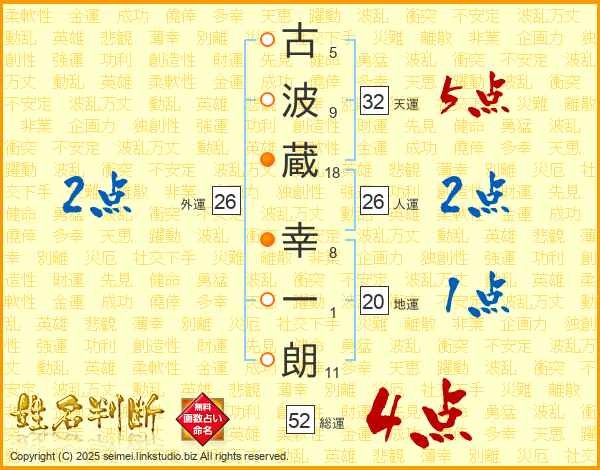 古波蔵幸一朗さんの総運は52画の4点!