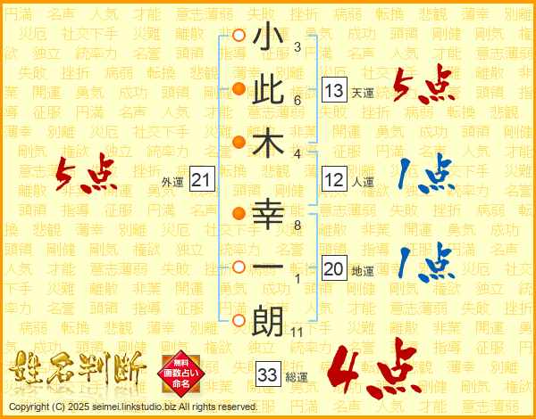 小此木幸一朗さんの総運は33画の4点!