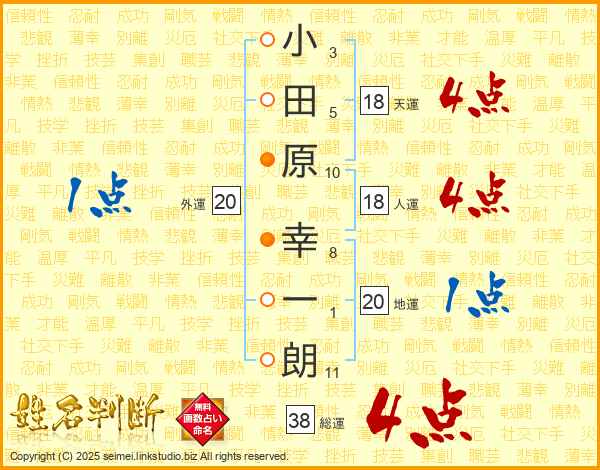 小(3画)田(5画)原(10画) 幸(8画)一(1画)朗(11画)