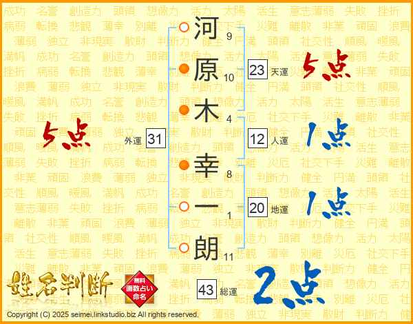 河原木幸一朗さんの総運は43画の2点!
