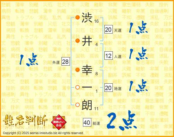 渋(16画)井(4画) 幸(8画)一(1画)朗(11画)
