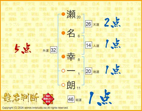 瀬名幸一朗さんの天運は26画の2点!