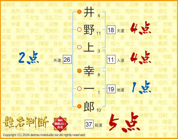 井野上幸一郎さんの総運は37画の5点!