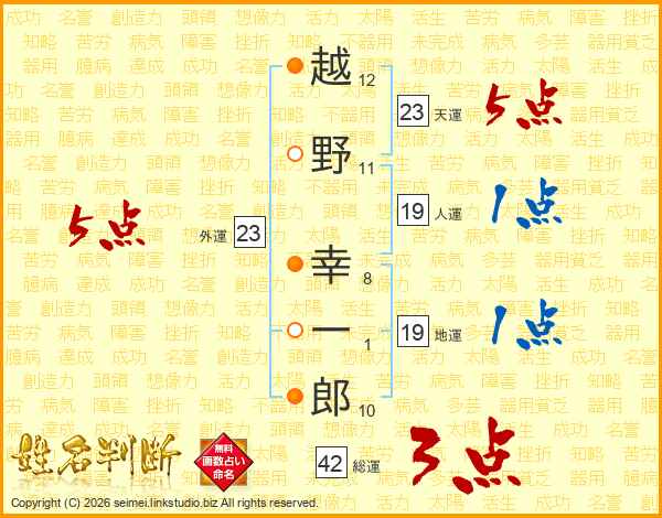 越野幸一郎さんの人運は19画の1点!