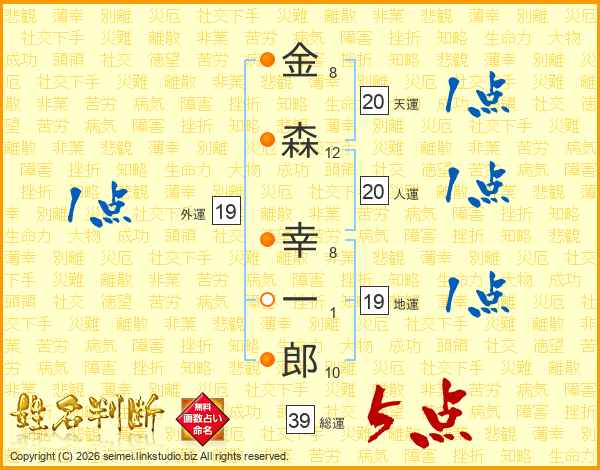 金森幸一郎さんの総運は39画の5点!