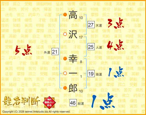高沢幸一郎さんの総運は46画の1点!