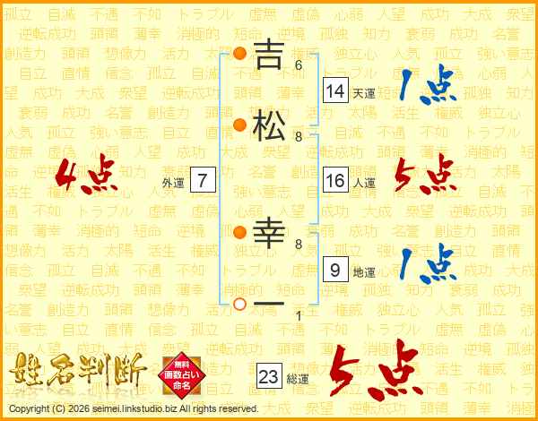 吉松幸一さんの総運は23画の5点!