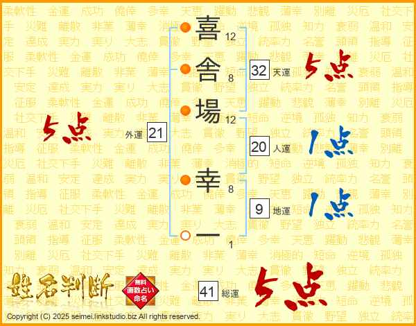喜舎場幸一さんの総運は41画の5点!
