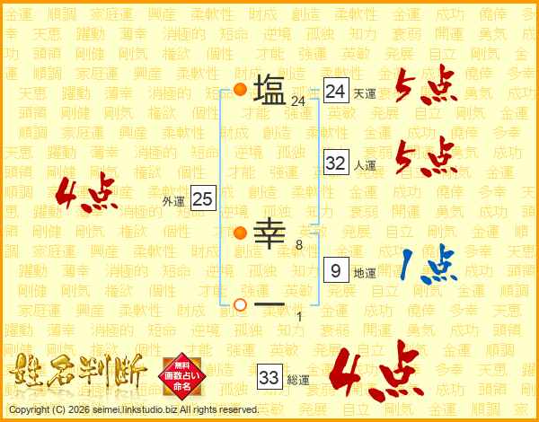 塩幸一さんの総運は33画の4点!