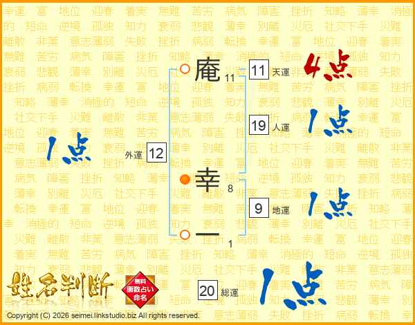 庵幸一さんの天運は11画の4点!