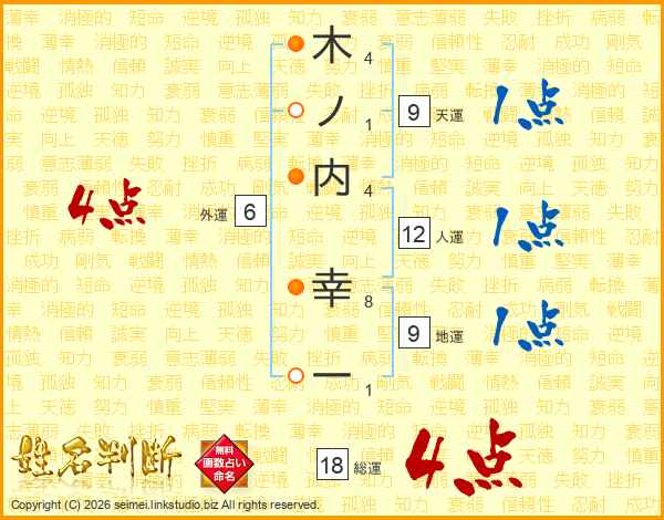 木ノ内幸一さんの総運は18画の4点!