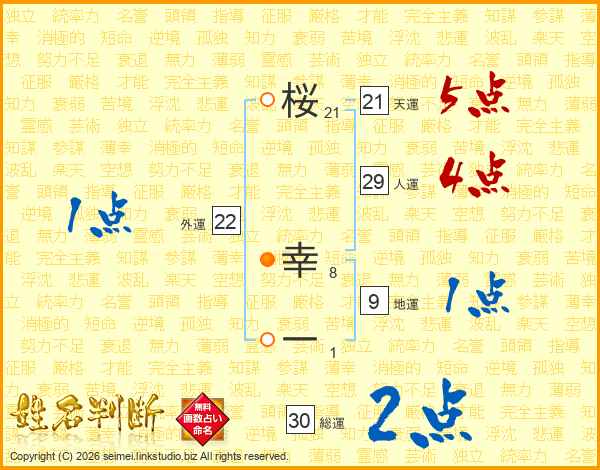 桜幸一さんの天運は21画の5点!