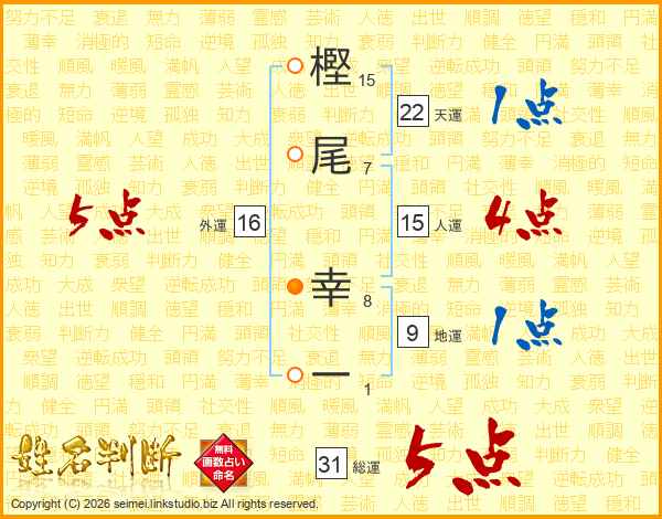 樫尾幸一さんの総運は31画の5点!