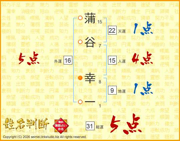 蒲谷幸一さんの総運は31画の5点!