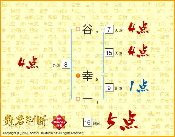 谷幸一さんの総運は16画の5点!