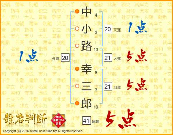 中(4画)小(3画)路(13画) 幸(8画)三(3画)郎(10画)