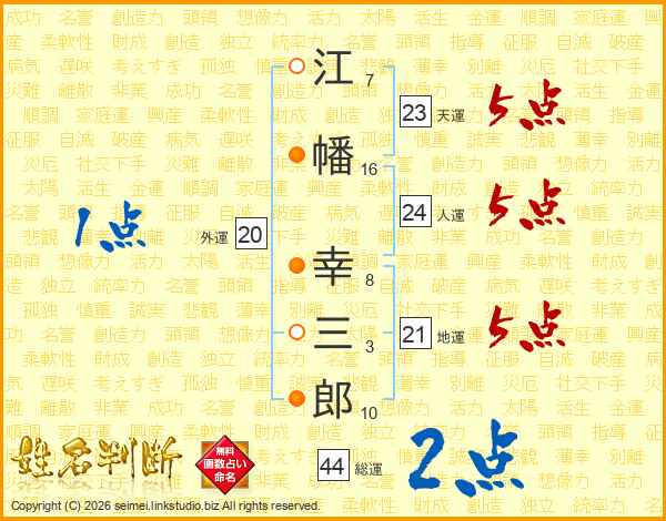 江幡幸三郎さんの総運は44画の2点!