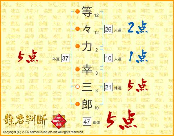 等々力幸三郎さんの総運は47画の5点!