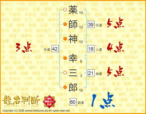 薬師神幸三郎さんの天運は39画の5点!