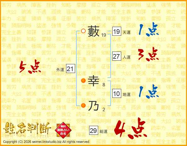 藪幸乃さんの天運は19画の1点!