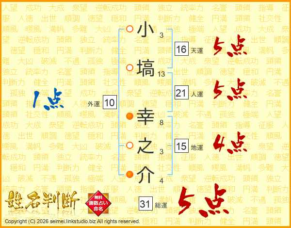 小(3画)塙(13画) 幸(8画)之(3画)介(4画)