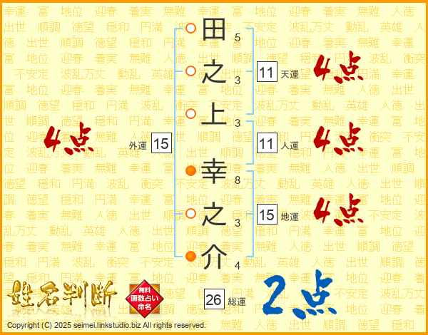 田(5画)之(3画)上(3画) 幸(8画)之(3画)介(4画)