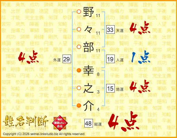 野々部幸之介さんの総運は48画の4点!