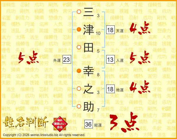 三津田幸之助さんの総運は36画の3点!