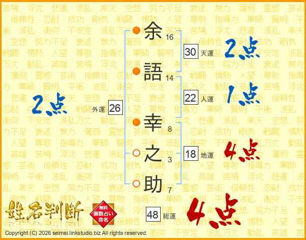 余(16画)語(14画) 幸(8画)之(3画)助(7画)