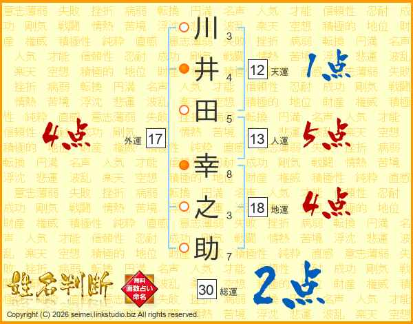 川井田幸之助さんの総運は30画の2点!