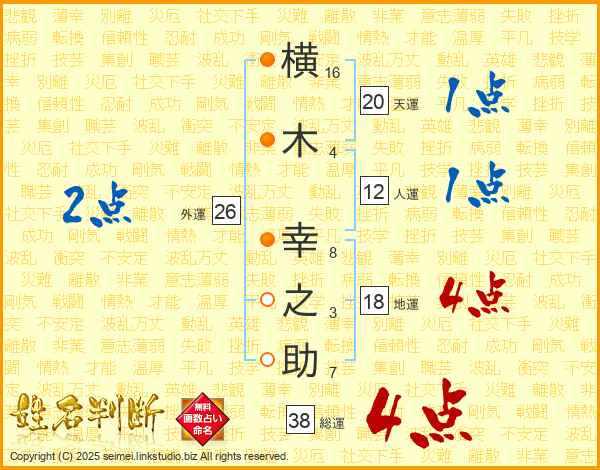 横(16画)木(4画) 幸(8画)之(3画)助(7画)