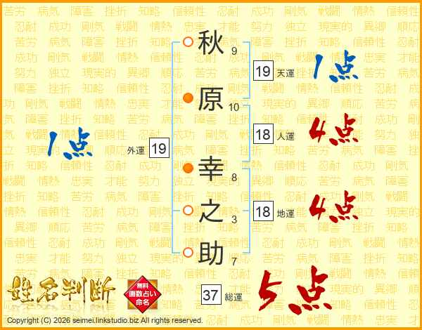 秋原幸之助さんの総運は37画の5点!